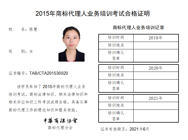 首页 > 代理分会 > 合格证书查询 > 2015年商标代理人业务培训考试合格证书 > 三科合格人员名单 > 山东千慧知识产权代理咨询有限公司