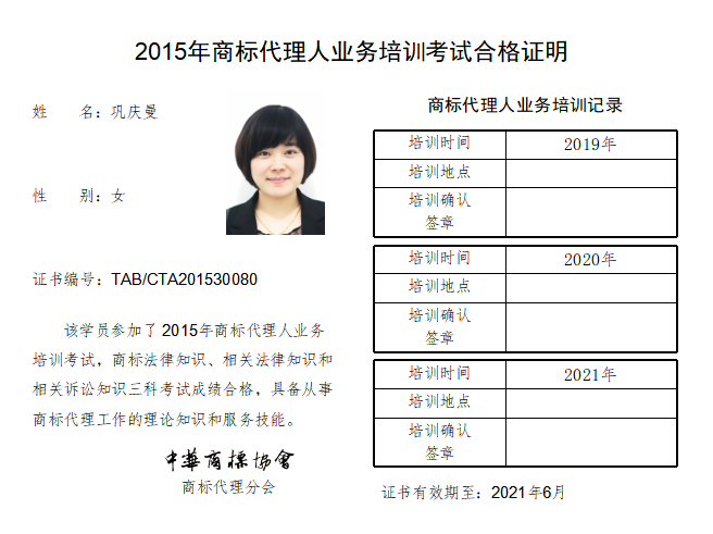 首页 > 代理分会 > 合格证书查询 > 2015年商标代理人业务培训考试合格证书 > 三科合格人员名单 > 山东千慧知识产权代理咨询有限公司
