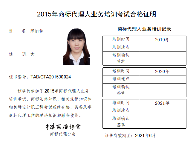 首页 > 代理分会 > 合格证书查询 > 2015年商标代理人业务培训考试合格证书 > 三科合格人员名单 > 永新专利商标代理有限公司