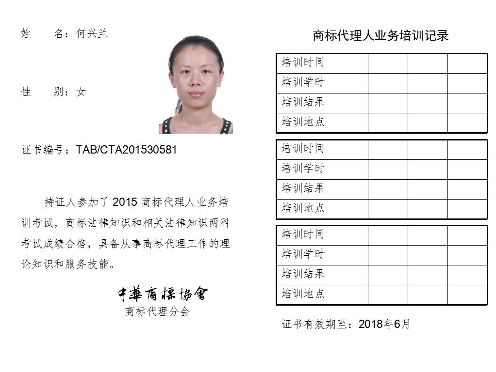 首页 > 代理分会 > 合格证书查询 > 2015年商标代理人业务培训考试合格证书 > 两科合格人员名单 > 北京东灵通知识产权服务有限公司