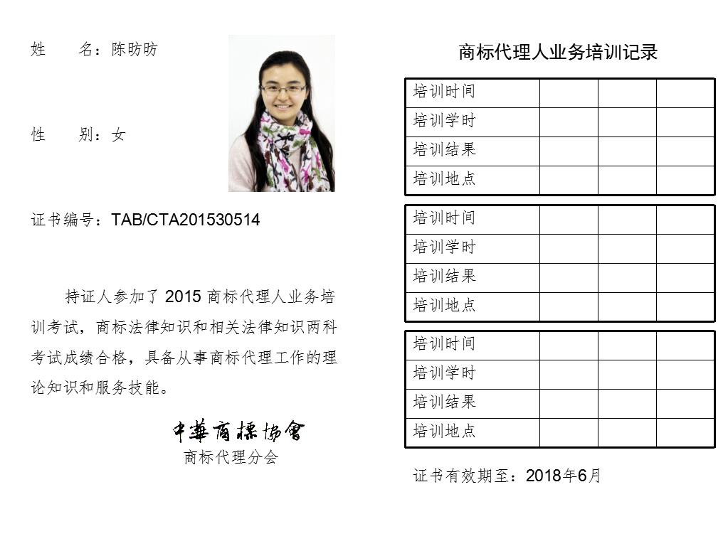 首页 > 代理分会 > 合格证书查询 > 2015年商标代理人业务培训考试合格证书 > 两科合格人员名单 > 北京天驰知识产权代理有限公司