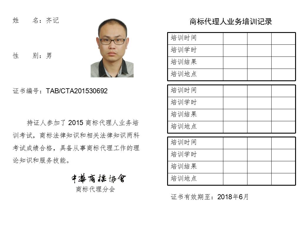 首页 > 代理分会 > 合格证书查询 > 2015年商标代理人业务培训考试合格证书 > 两科合格人员名单 > 北京聿宏知识产权代理有限公司