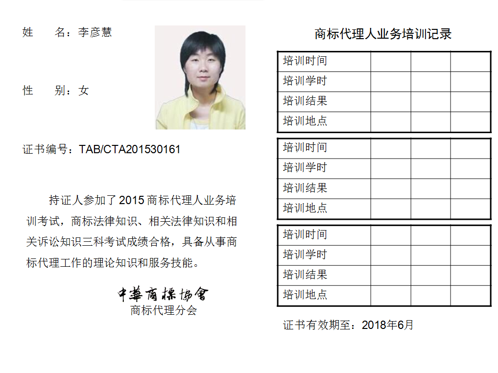 首页 > 代理分会 > 合格证书查询 > 2015年商标代理人业务培训考试合格证书 > 两科合格人员名单 > 北京元合联合知识产权代理事务所(普通合伙)