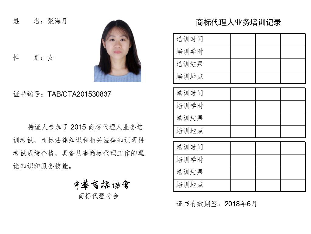 首页 > 代理分会 > 合格证书查询 > 2015年商标代理人业务培训考试合格证书 > 两科合格人员名单 > 北京中理通知识产权代理有限公司