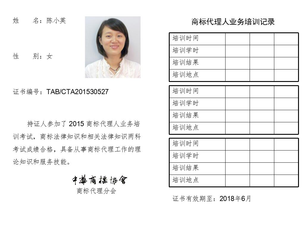 首页 > 代理分会 > 合格证书查询 > 2015年商标代理人业务培训考试合格证书 > 两科合格人员名单 > 厦门合道联合知识产权事务有限公司