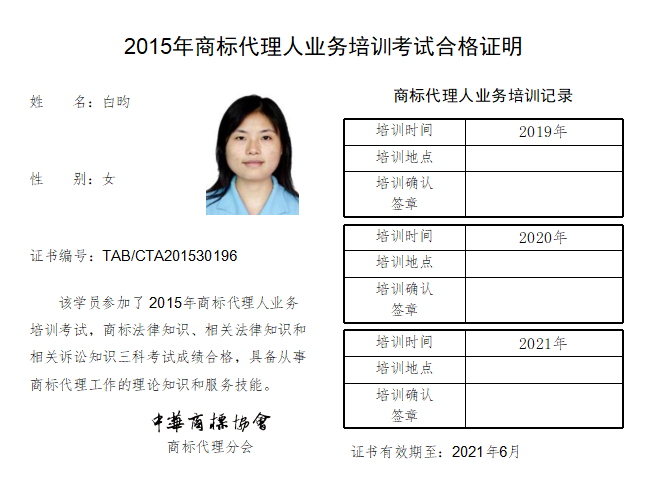 首页 > 代理分会 > 合格证书查询 > 2015年商标代理人业务培训考试合格证书 > 三科合格人员名单 > 北京聿宏知识产权代理有限公司