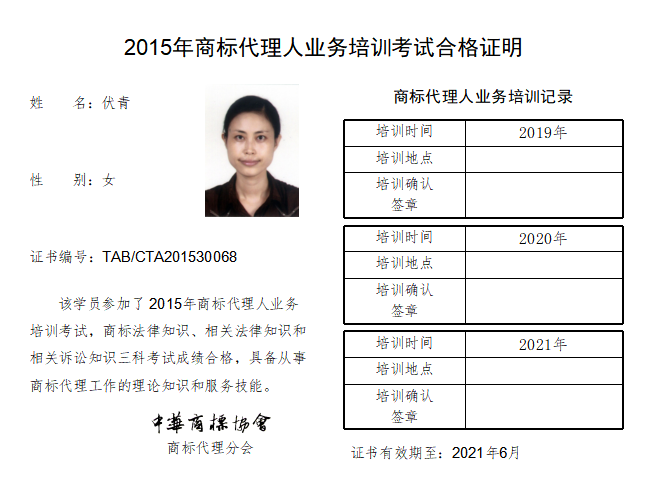 首页 > 代理分会 > 合格证书查询 > 2015年商标代理人业务培训考试合格证书 > 三科合格人员名单 > 永新专利商标代理有限公司