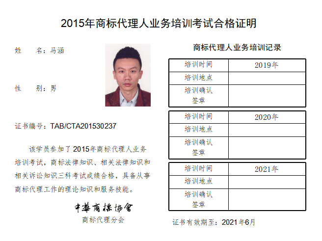 首页 > 代理分会 > 合格证书查询 > 2015年商标代理人业务培训考试合格证书 > 三科合格人员名单 > 永新专利商标代理有限公司