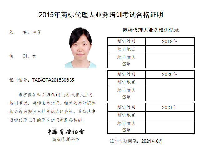 首页 > 代理分会 > 合格证书查询 > 2015年商标代理人业务培训考试合格证书 > 三科合格人员名单 > 永新专利商标代理有限公司