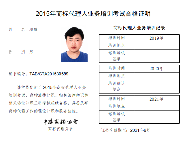 首页 > 代理分会 > 合格证书查询 > 2015年商标代理人业务培训考试合格证书 > 三科合格人员名单 > 永新专利商标代理有限公司