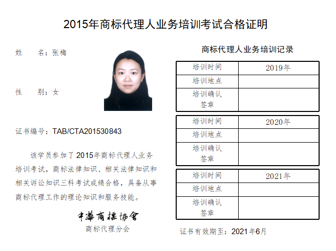 首页 > 代理分会 > 合格证书查询 > 2015年商标代理人业务培训考试合格证书 > 三科合格人员名单 > 永新专利商标代理有限公司