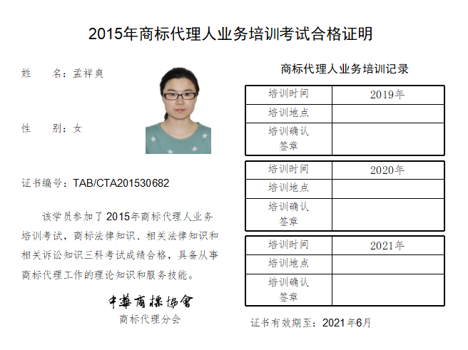 首页 > 代理分会 > 合格证书查询 > 2015年商标代理人业务培训考试合格证书 > 三科合格人员名单 > 北京正理商标事务所有限公司