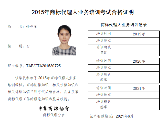 首页 > 代理分会 > 合格证书查询 > 2015年商标代理人业务培训考试合格证书 > 三科合格人员名单 > 北京正理商标事务所有限公司