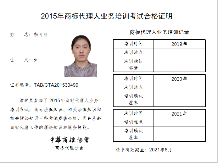 首页 > 代理分会 > 合格证书查询 > 2015年商标代理人业务培训考试合格证书 > 三科合格人员名单 > 北京林达刘知识产权代理事务所(普通合伙)