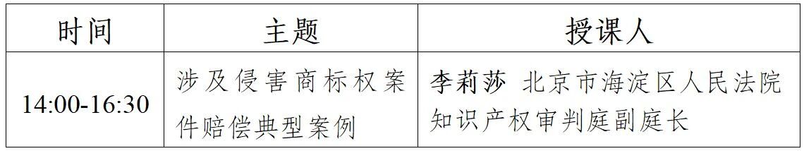 为帮助商标权利人、商标案件代理人系统掌握商标侵权案件中司法实践的赔偿数额确定规则及证据提交要求,助力其依法高效主张合理经济赔偿,提升商标侵权案件应对处置能力,我会定于12月23日在北京举办商标侵权案件赔偿认定实务培训班(线上线下相结合)。因课程内容变更,现将培训相关安排调整如下: