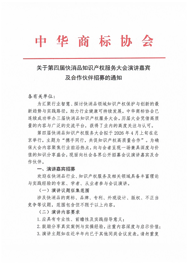 365体育投注_nba比分直播-【唯一授权牌照】@:第四届快消品知识产权服务大会演讲嘉宾及合作伙伴招募的通知