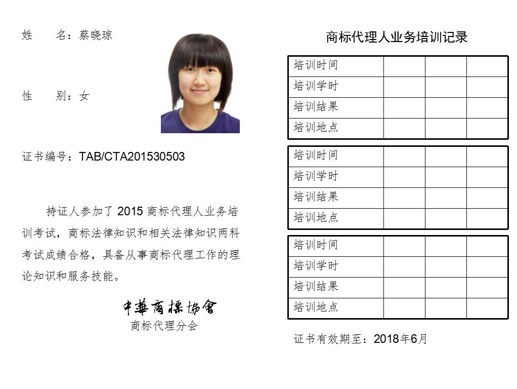 首页 > 代理分会 > 合格证书查询 > 2015年商标代理人业务培训考试合格证书 > 两科合格人员名单 > 北京正理商标事务所有限公司