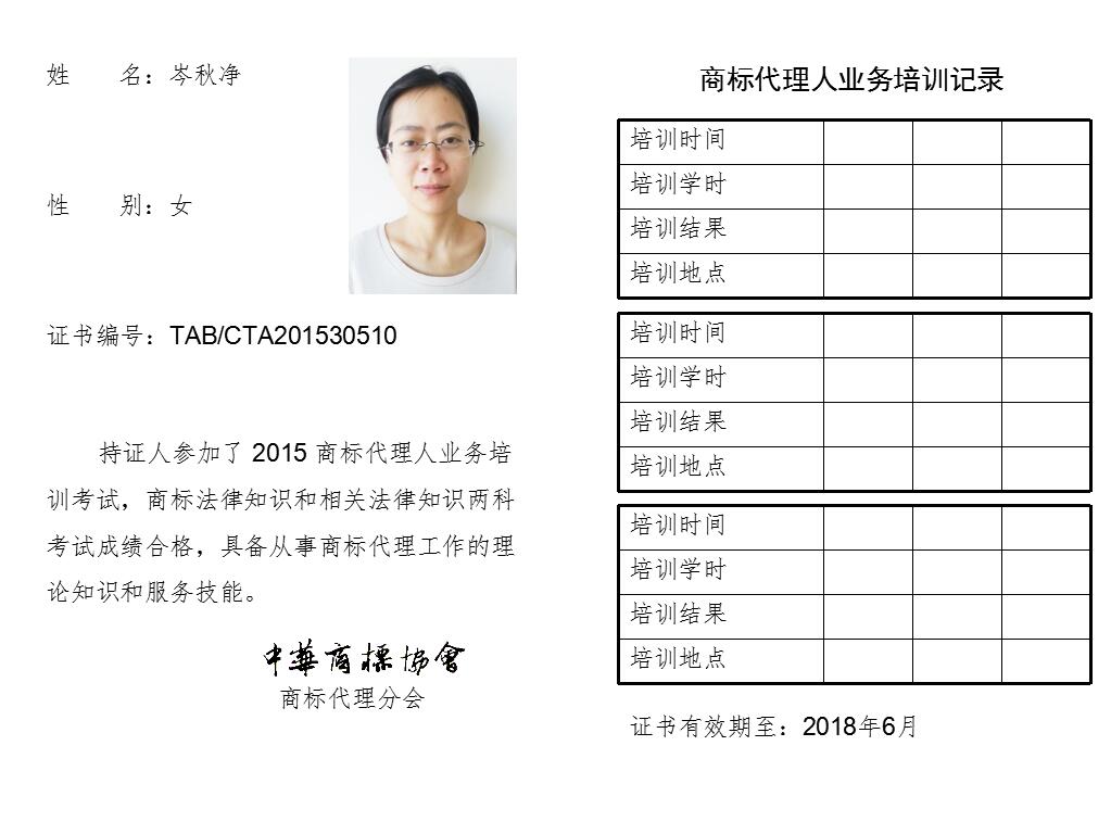 首页 > 代理分会 > 合格证书查询 > 2015年商标代理人业务培训考试合格证书 > 两科合格人员名单 > 北京正理商标事务所有限公司