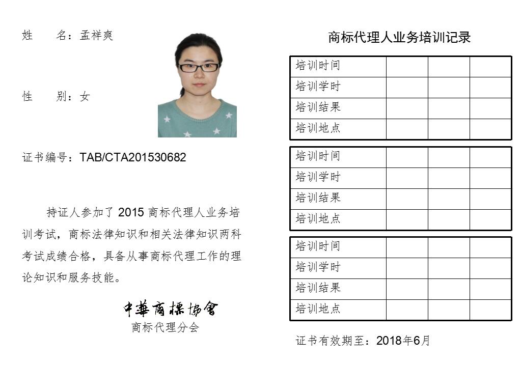首页 > 代理分会 > 合格证书查询 > 2015年商标代理人业务培训考试合格证书 > 两科合格人员名单 > 北京正理商标事务所有限公司