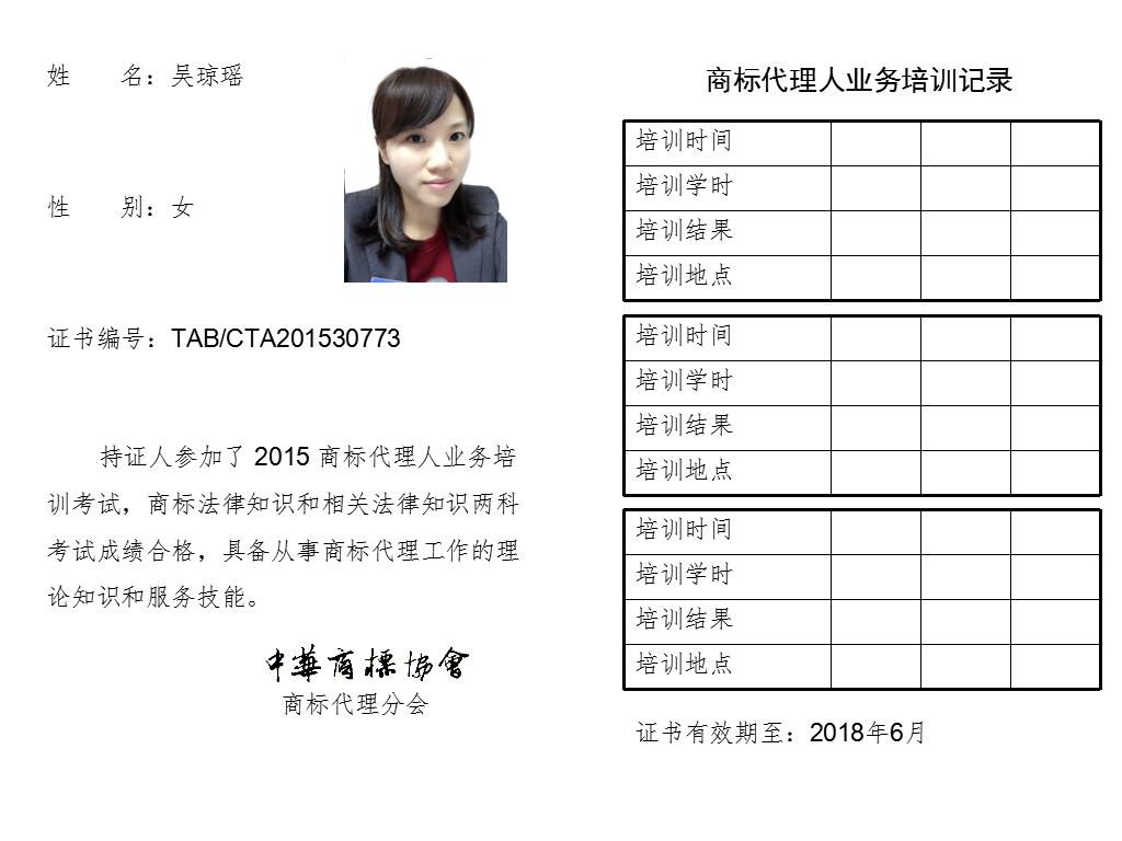 首页 > 代理分会 > 合格证书查询 > 2015年商标代理人业务培训考试合格证书 > 两科合格人员名单 > 温州金点知识产权顾问有限公司