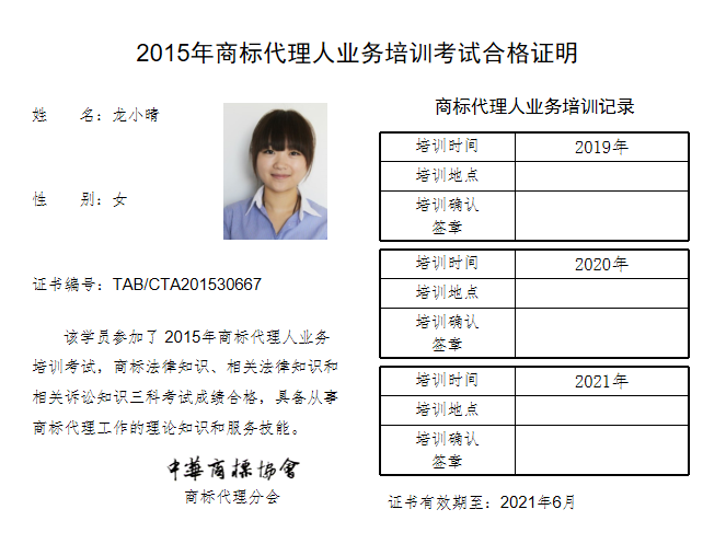 首页 > 代理分会 > 合格证书查询 > 2015年商标代理人业务培训考试合格证书 > 三科合格人员名单 > 北京山天大蓄知识产权代理股份有限公司